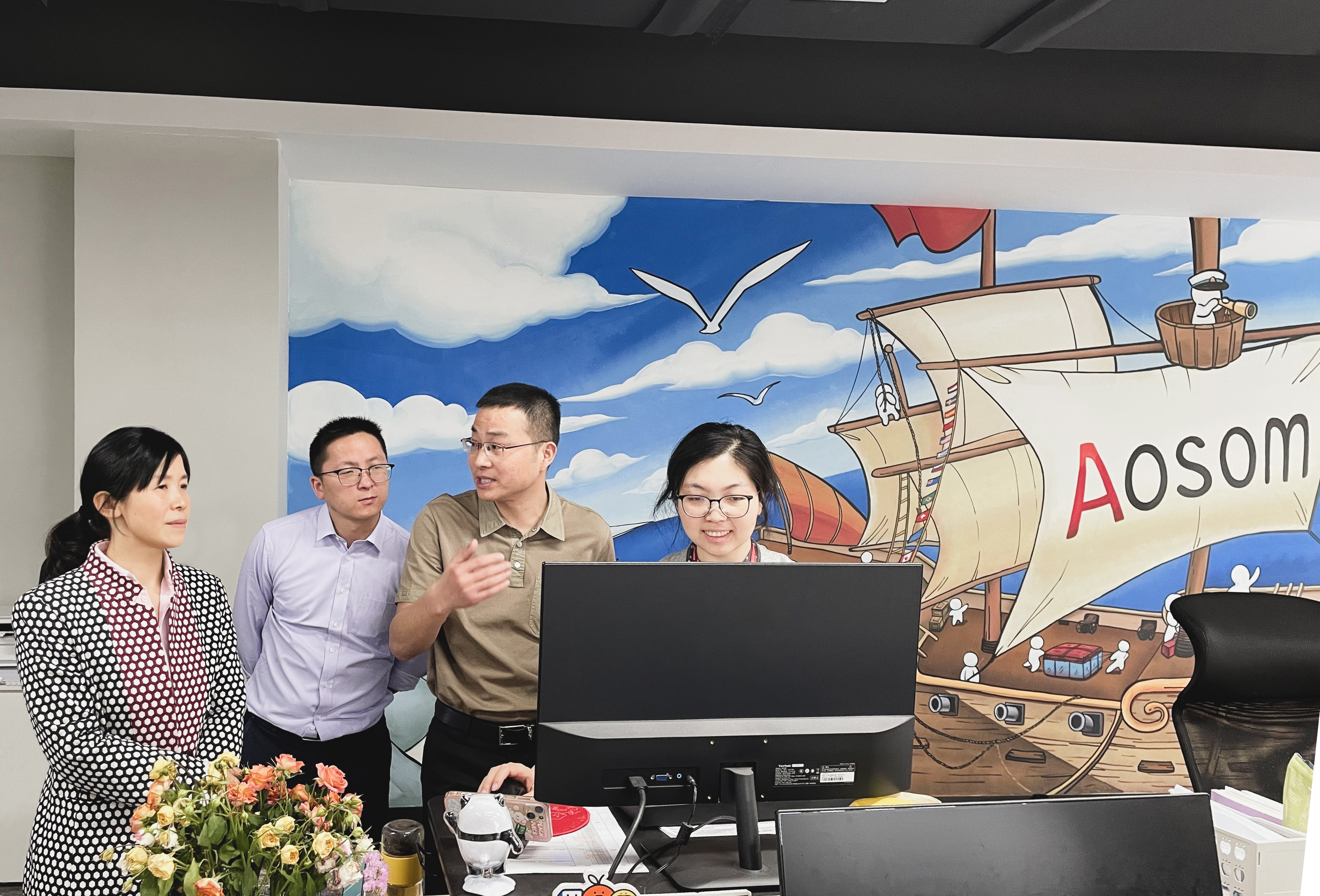 会后,王局长一行来到遨森自建独立站办公区,了解独立站的业务运行及技术应用情况,对独立站上运用的智能推荐、智能搜索等信息技术应用表示赞赏。